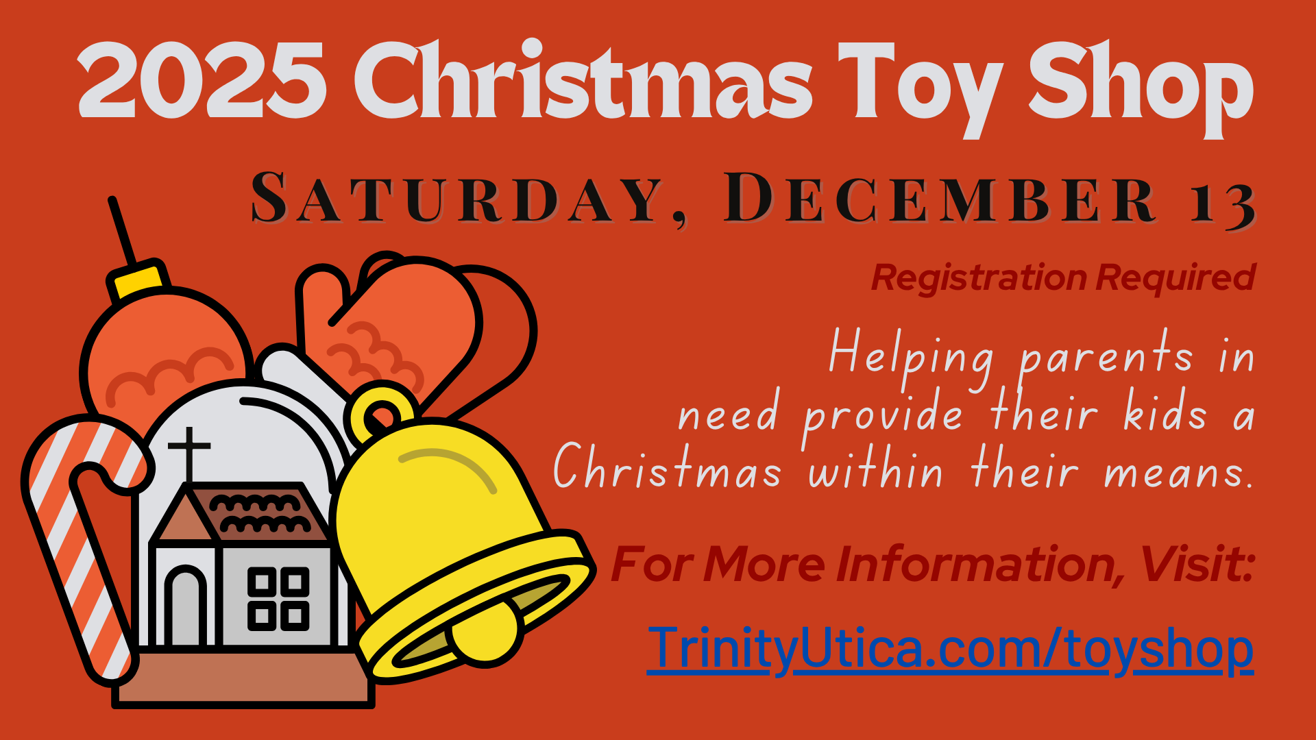 The Christmas Toy Shop will take place at Trinity Utica in the Fellowship Hall (Hall Rd & Van Dyke Ave).
