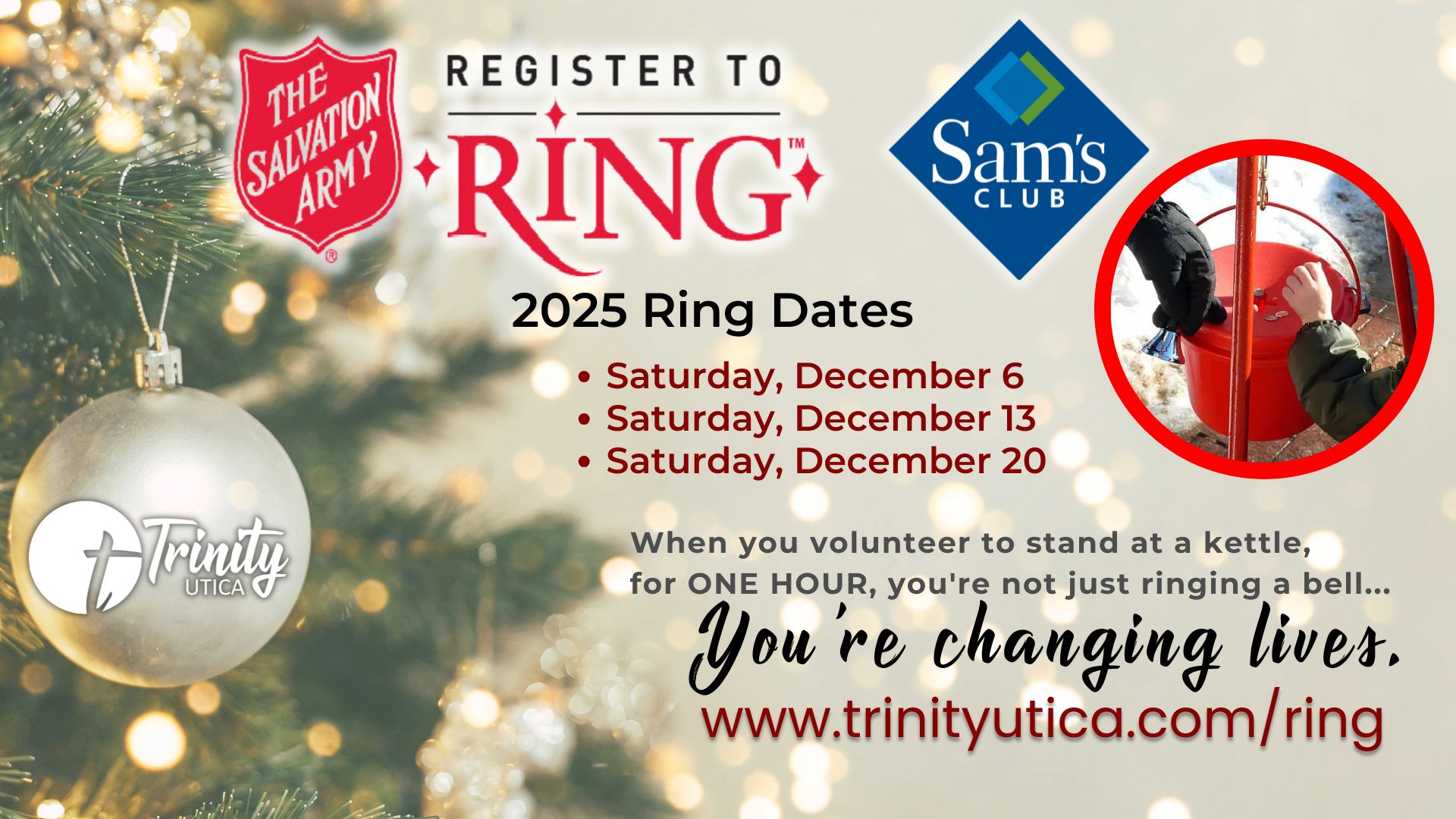 Trinity will be ringing bells for the Salvation Army on Saturday, December 6, 13 & 20. We will be ringing at Sam's Club in Utica. Each registration is a one-hour commitment to ring.